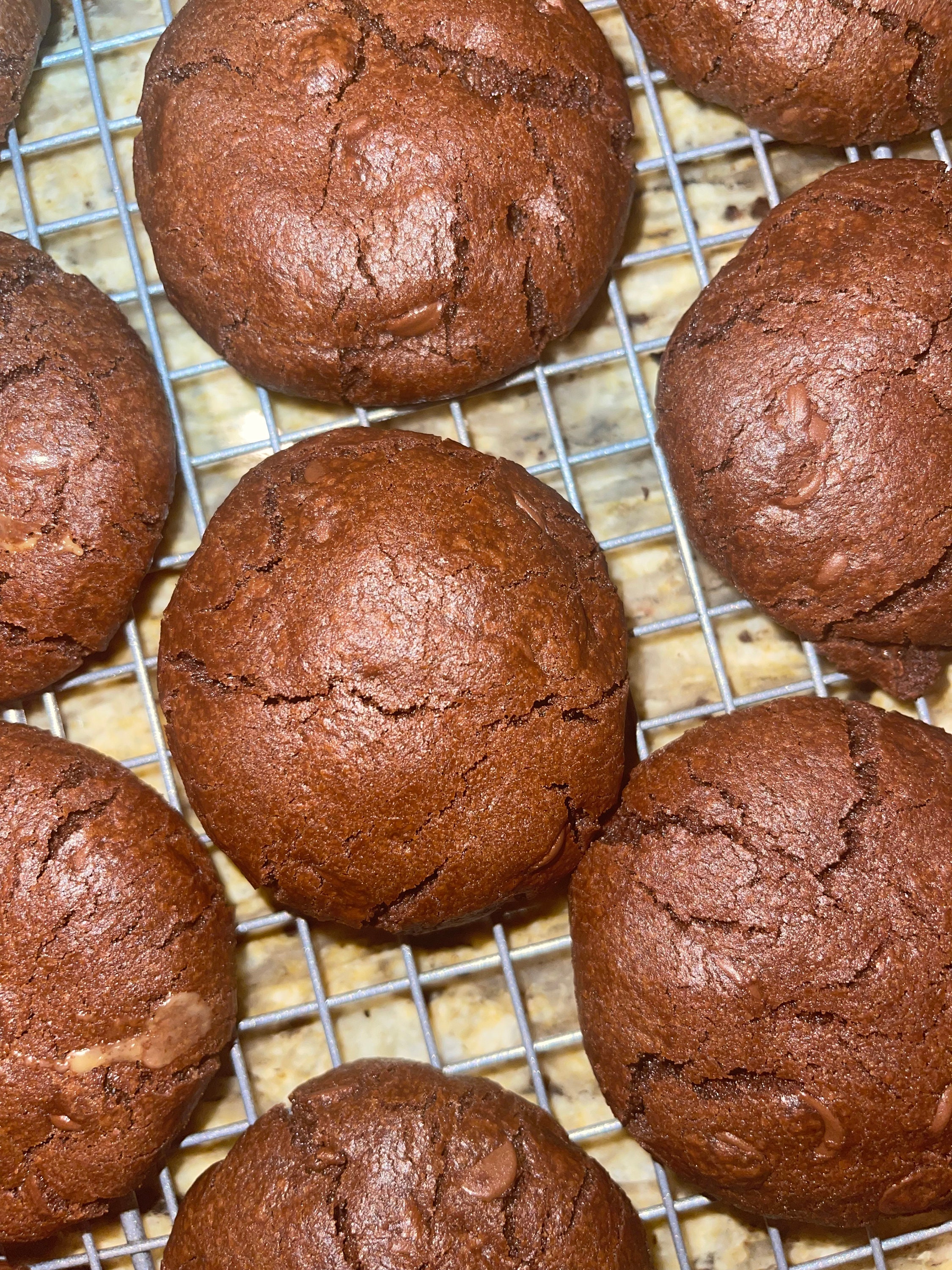 Homemade, lightly baked and soft, chocolate dough cookies with Hershey’s chocolate chips and stuffed with caramel sauce.