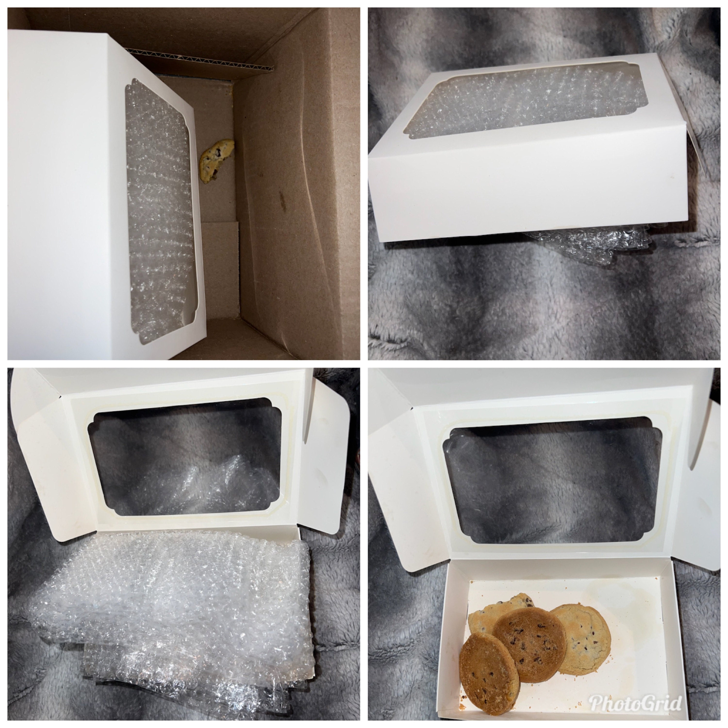 The cookies arrived hard and did not have a gooey center as stated in the description. Despite the cookies being hard, the taste was good, but they were poorly packaged. They arrived with the box of cookies not sealed, the bubble wrap was inside of the box of cookies and it looked like they were just thrown in the box with no care and concern.
